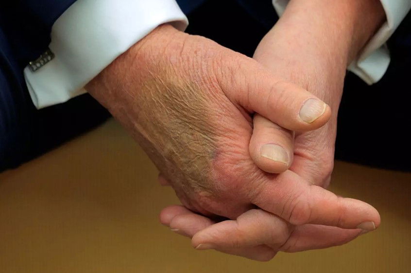 Yet another person wondered aloud, โWhy does Trump have a big bruise on the right hand?โ