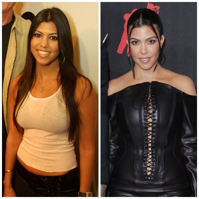 Known for her natural aesthetic within the Kardashian family, Kourtney Kardashian’s transformation has been a topic of speculation. Though rumors suggest numerous procedures, she maintains that her only enhancement was a breast augmentation at 21, a decision she now reflects on with regret.